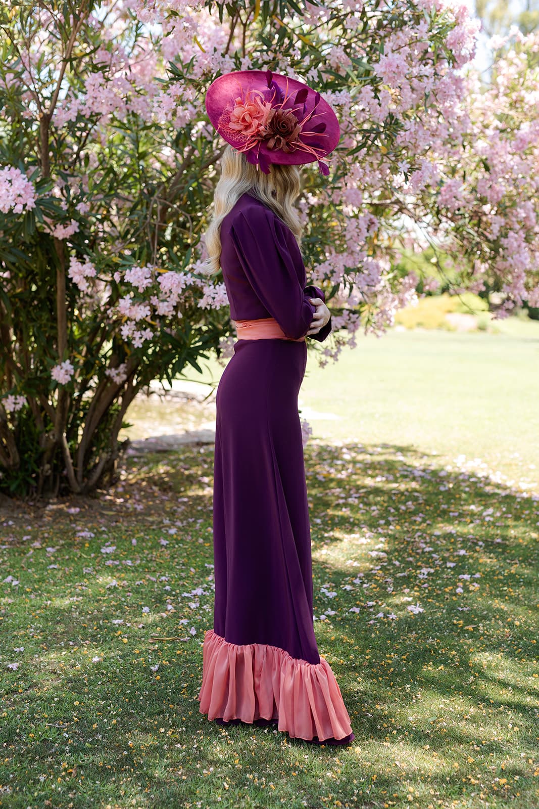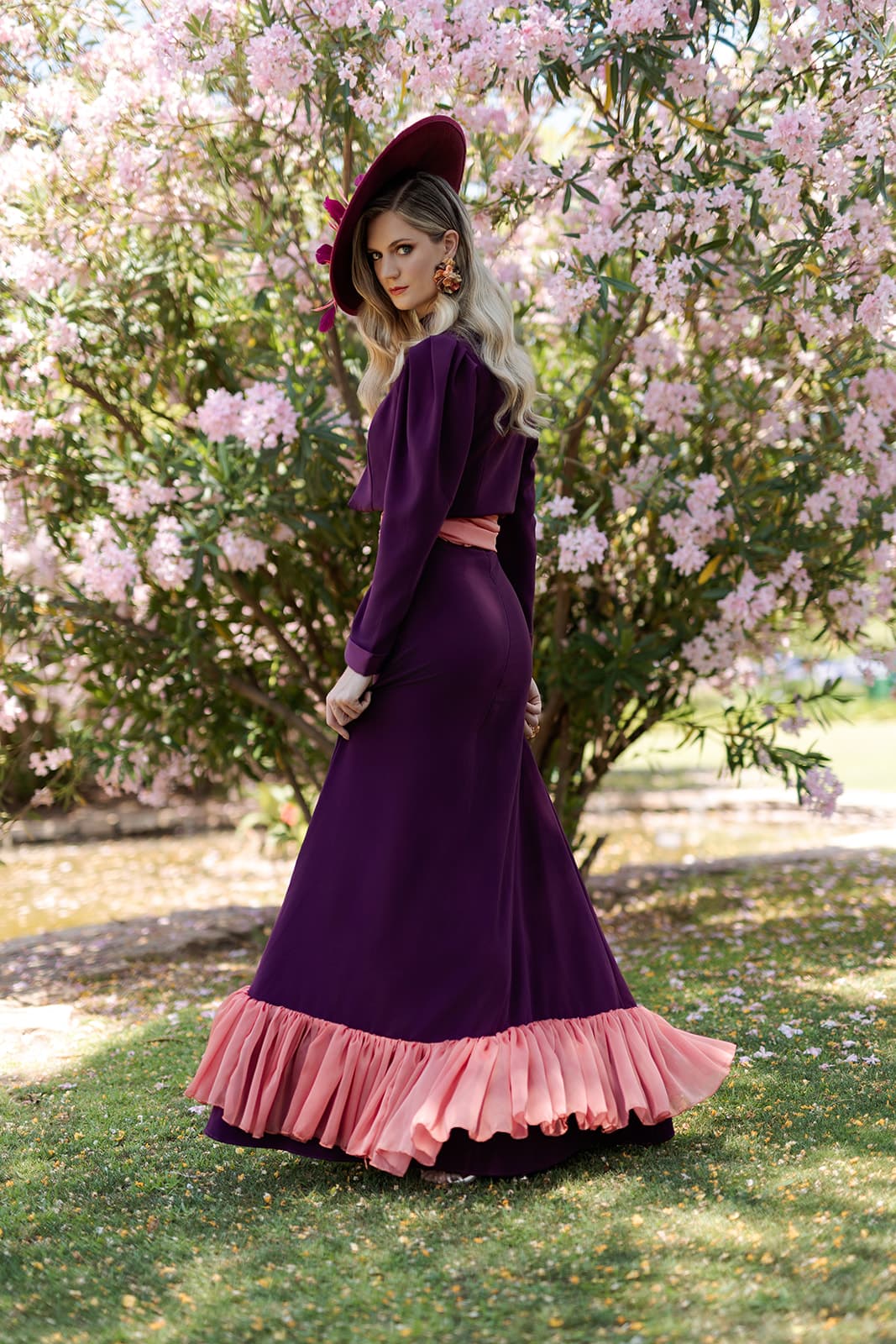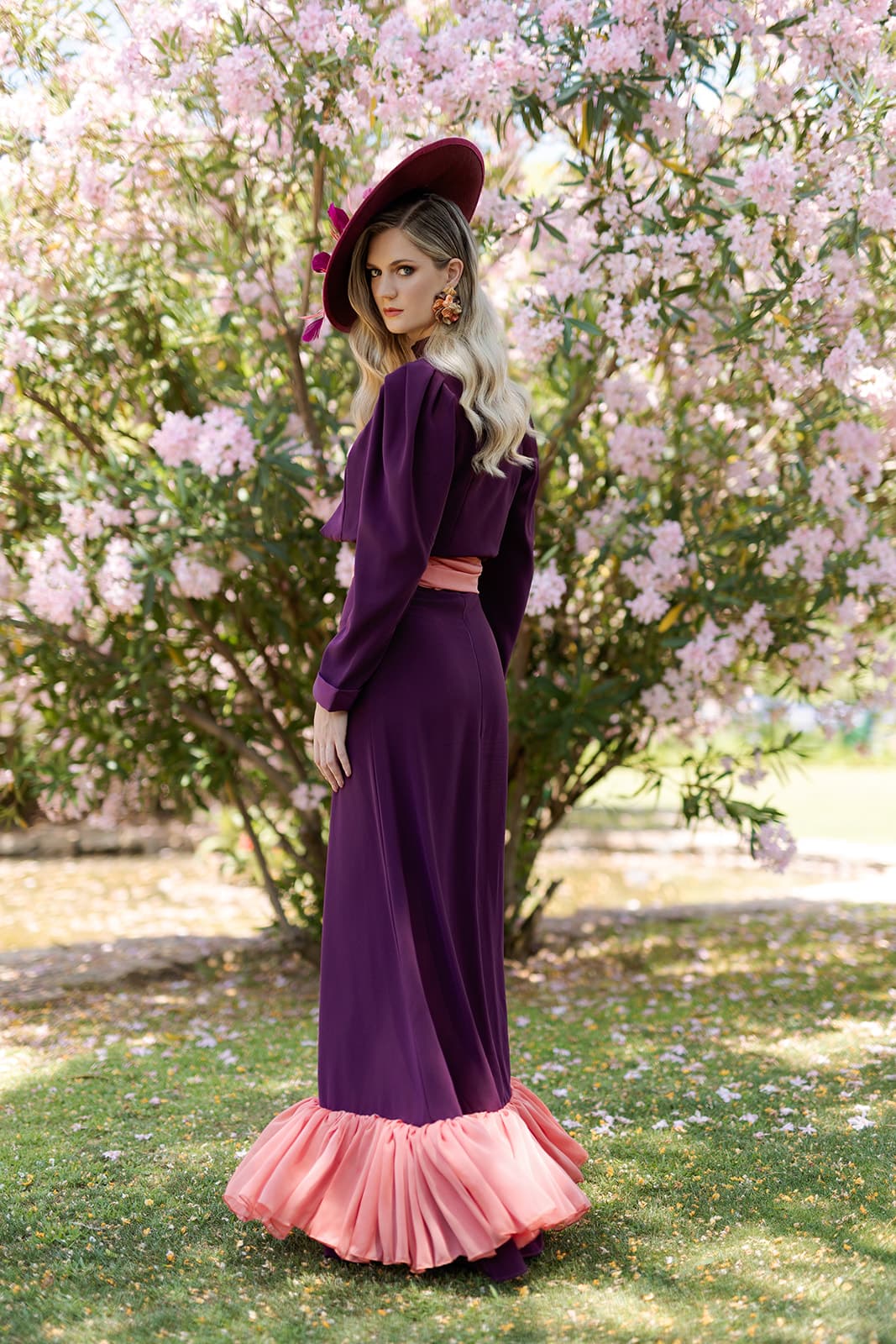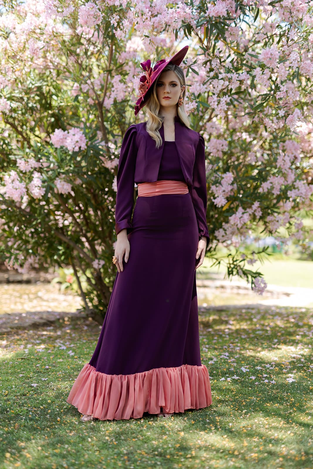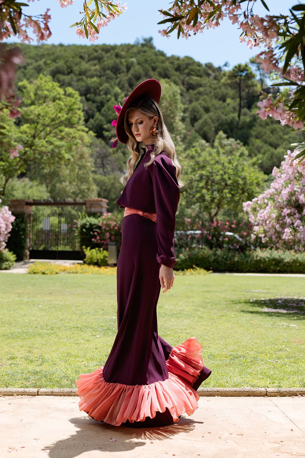 Descubre este diseño exclusivo confeccionado con la máxima calidad de Tejidos Marfil (Málaga Capital). Una combinación perfecta de tejido Mara en color burdeos, que aporta cuerpo y elegancia, con la ligereza de la gasa en color naranja, creando un movimiento espectacular.