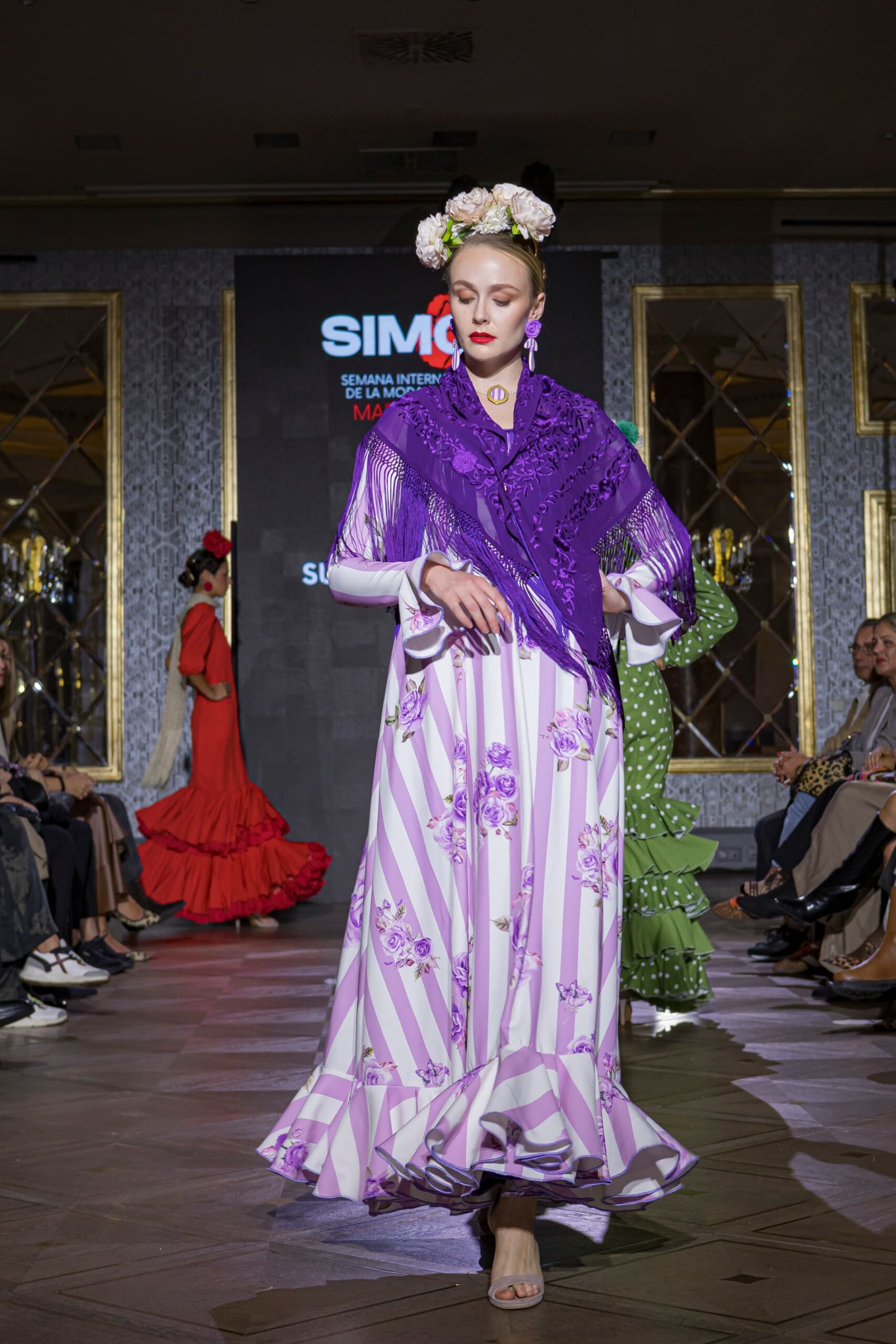 Este diseño único combina elegancia y tradición con un estampado de rayas malva y blanco, adornado con delicadas rosas en tonos lilas. El escote corazón realza la feminidad, mientras que las mangas con volantes y el bajo con vuelo aportan movimiento y gracia al conjunto. Confeccionado en talla 38, es una pieza exclusiva pensada para mujeres que buscan destacar con un estilo auténtico y sofisticado. Ideal para eventos especiales, ferias o celebraciones con alma andaluza.